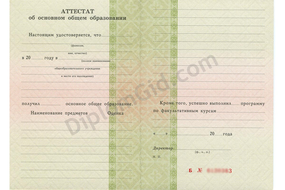 Аттестат об окончании 9 классов 1994-2006 года